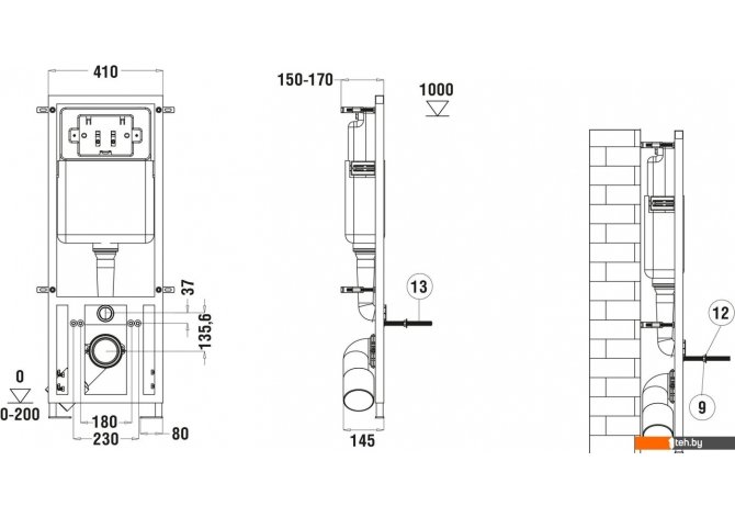 | Отверстия под инсталляцию | 180 мм |