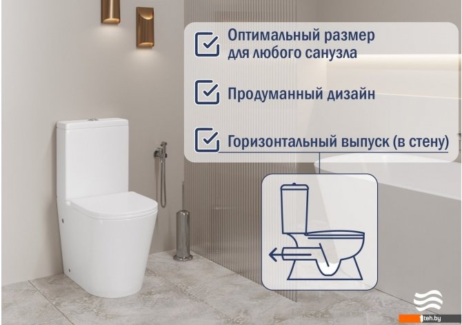 | Информация | -Ключевые характеристики Напольный унитаз с компактным бачком и горизонтальным выпуском, выполненный из фарфора с белым цветом и хромированной круглой кнопкой смыва. Максимальная нагрузка до 500 кг, овальная воронкообразная чаша с каскадным двухрежимным сливом и антибактериальным покрытием. В комплекте быстросъемное сиденье из полипропилена с микролифтом и гигиенический душ с черной латунной панелью и механическим смесителем. -Преимущества и отличия Безободковая конструкция обеспечивает высокую гигиеничность и легкость ухода, а горизонтальный выпуск позволяет устанавливать унитаз вплотную к стене для эстетичного внешнего вида. Быстросъемное сиденье с антибактериальным покрытием и микролифтом повышает комфорт и удобство эксплуатации. Гигиенический душ с длиной шланга 120 см и скрытой конструкцией создает аккуратный интерьер и удобство использования. -Практичность Компактный бачок с двухрежимным сливом позволяет экономить воду, а каскадный тип смыва обеспечивает эффективное очищение чаши. Полипропиленовое сиденье легко снимается и устанавливается без инструментов, что упрощает уход и замену. Гигиенический душ с механическим смесителем и монтажным набором подходит для настенного монтажа и совместим с большинством стилей интерьера. -Уникальность Антибактериальное покрытие чаши и сиденья повышает уровень гигиены и безопасности. Высокая максимальная нагрузка до 500 кг гарантирует надежность и долговечность. Скрытая часть инсталляции для гигиенического душа и черное покрытие латунной панели подчеркивают современный дизайн и долговечность при регулярном использовании. Читать дальше |