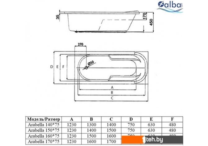 Фотографии, описание и технические характеристики модели Alba Spa Arabella 150x75 (с экраном и каркасом) взяты из открытых источников, официального сайта производителя или представительства Alba Spa в Республике Беларусь.