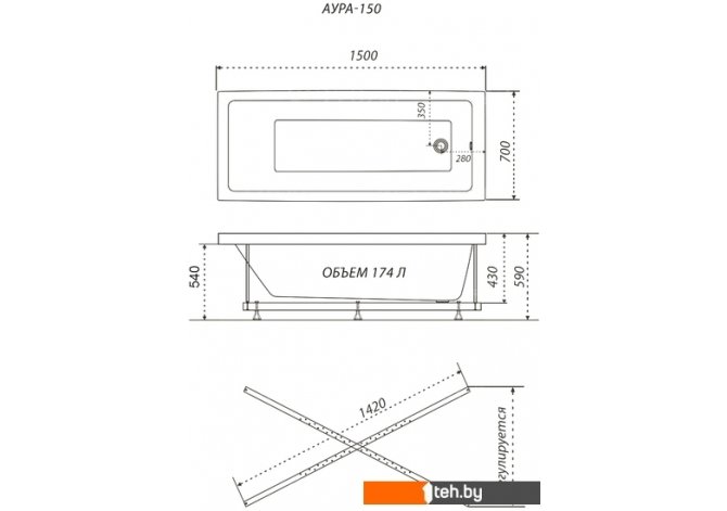 Фотографии, описание и технические характеристики модели Triton Аура 150x70 (с ножками) взяты из открытых источников, официального сайта производителя или представительства Triton в Республике Беларусь.