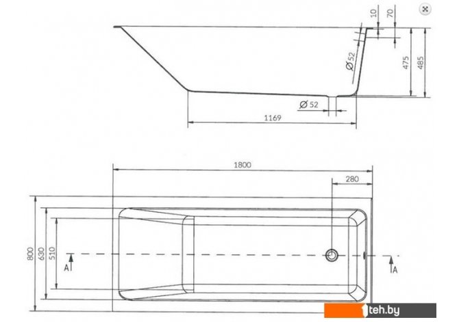 | Глубина ванны | 47.5 см |