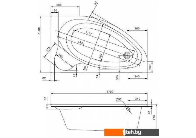 | Глубина ванны | 47 см |