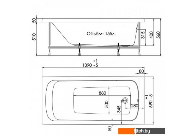 | Полезный объём | 155 л |