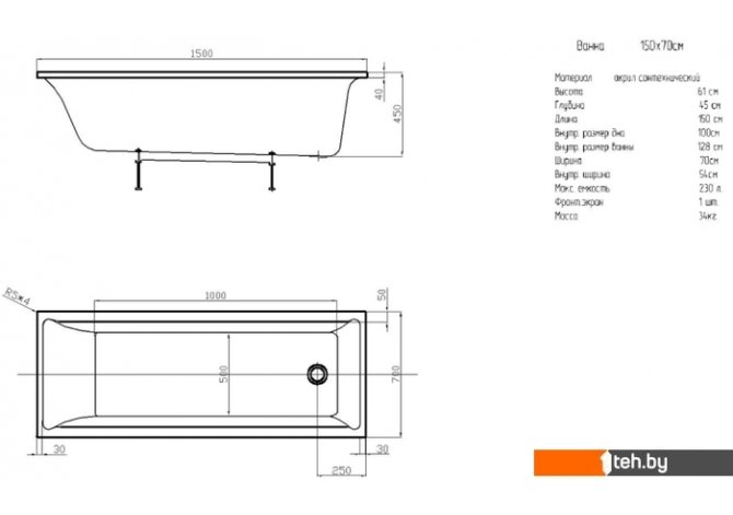 | Глубина ванны | 45 см |