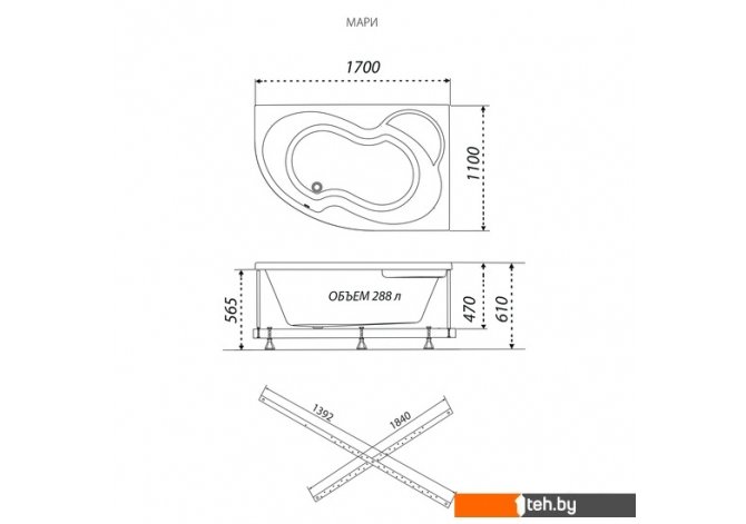 Фотографии, описание и технические характеристики модели Triton Мари 170х110 левая (с каркасом) взяты из открытых источников, официального сайта производителя или представительства Triton в Республике Беларусь.