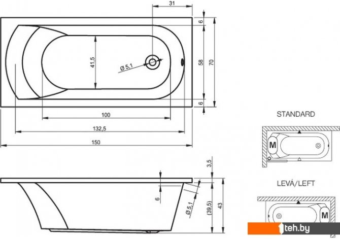 Фотографии, описание и технические характеристики модели Riho Miami 150x70 (с ножками) взяты из открытых источников, официального сайта производителя или представительства Riho в Республике Беларусь.