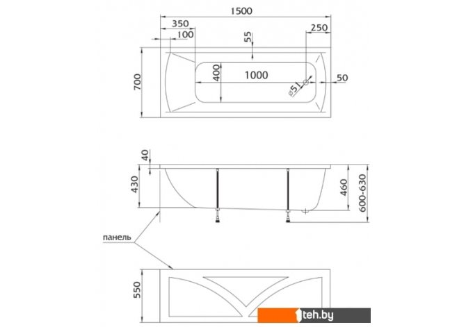 Фотографии, описание и технические характеристики модели 1Марка Modern 150x70 (с ножками) взяты из открытых источников, официального сайта производителя или представительства 1Марка в Республике Беларусь.