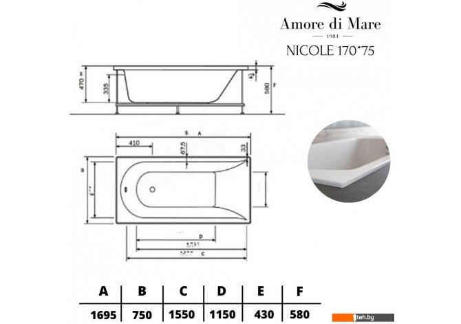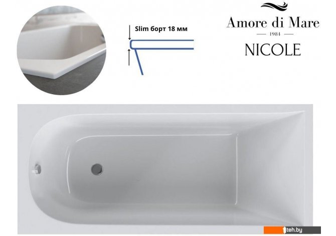 Фотографии, описание и технические характеристики модели Amore di Mare Nicole 170x75 взяты из открытых источников, официального сайта производителя или представительства Amore di Mare в Республике Беларусь.