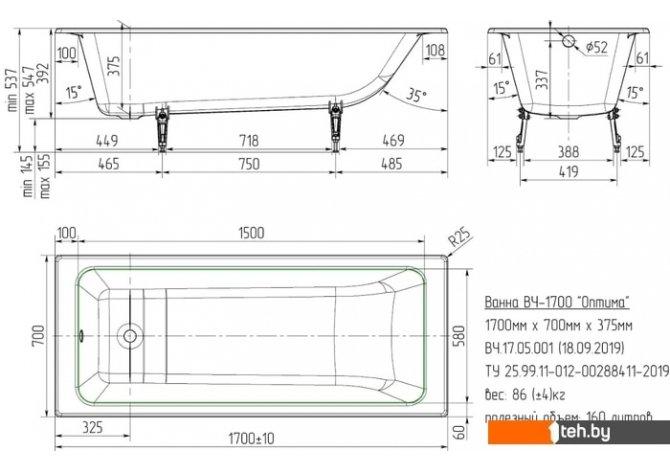 Фотографии, описание и технические характеристики модели Универсал Оптима 170x70 взяты из открытых источников, официального сайта производителя или представительства Универсал в Республике Беларусь.