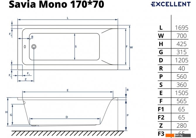 Фотографии, описание и технические характеристики модели Excellent Savia Mono 150x70 (с ножками) взяты из открытых источников, официального сайта производителя или представительства Excellent в Республике Беларусь.