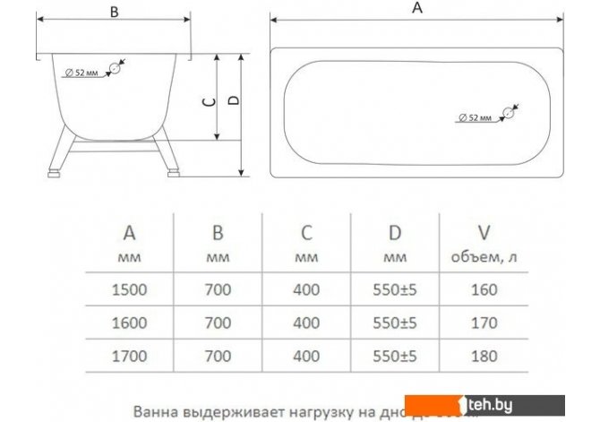 Фотографии, описание и технические характеристики модели ОАО "ВИЗ" Tevro 170x70 взяты из открытых источников, официального сайта производителя или представительства ОАО "ВИЗ" в Республике Беларусь.