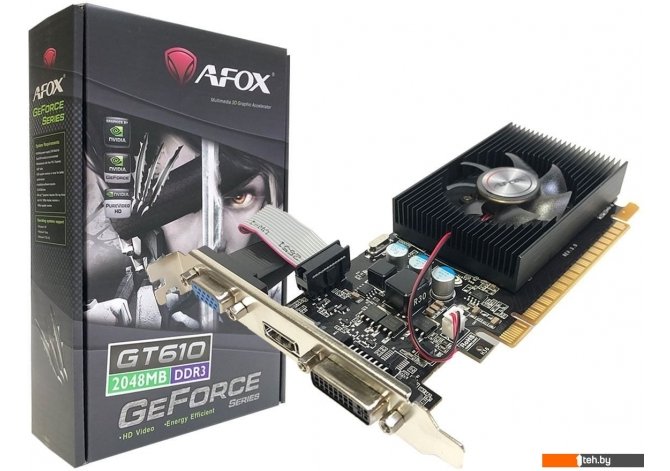 Фотографии, описание и технические характеристики модели видеокарты для компьютера AFOX GeForce GT 610 2GB DDR3 AF610-2048D3L7-V6 взяты из открытых источников, официального сайта производителя или представительства AFOX в Республике Беларусь.