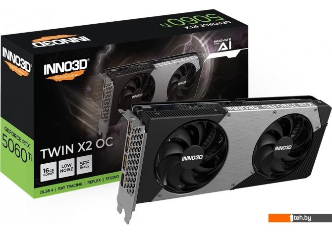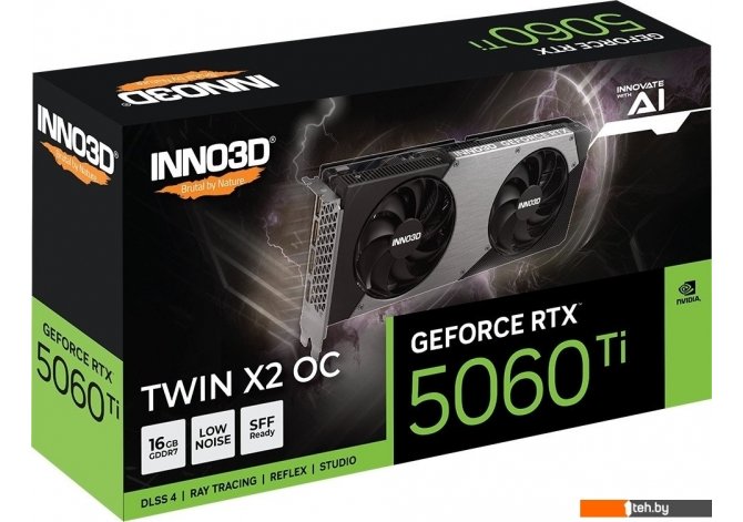 Фотографии, описание и технические характеристики модели видеокарты для компьютера Inno3D GeForce RTX 5060 Ti 16GB Twin X2 OC N506T2-16D7X-191073N взяты из открытых источников, официального сайта производителя или представительства Inno3D в Республике Беларусь.