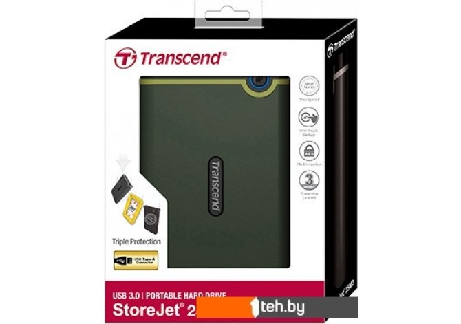 Фотографии, описание и технические характеристики модели Transcend StoreJet 25M3 1TB (зеленый) взяты из открытых источников, официального сайта производителя или представительства Transcend в Республике Беларусь.